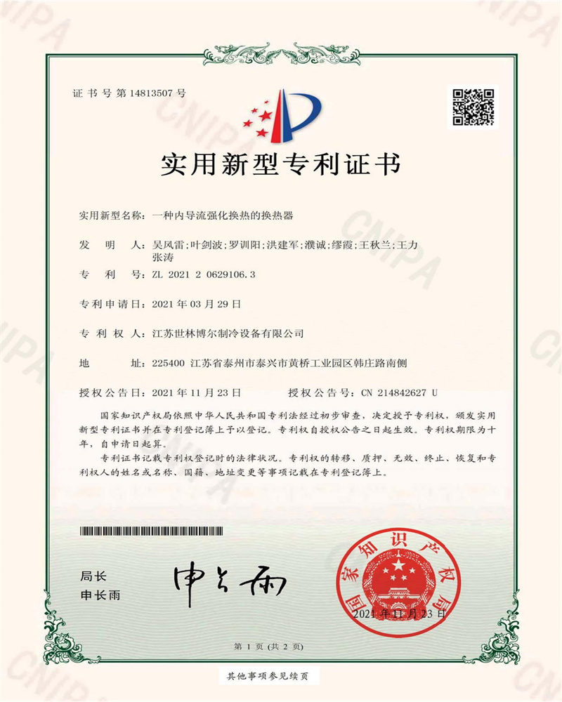 江蘇世林博爾制冷設(shè)備有限公司是一家設(shè)計(jì)、制造和銷(xiāo)售殼管式換熱器產(chǎn)品為一體的企業(yè)。主要產(chǎn)品系列為:水冷凝冷凝器、海水冷凝器;直條型、U型干式蒸發(fā)器、耐酸堿性蒸發(fā)器系列;內(nèi)置、外置油分滿(mǎn)液式蒸發(fā)器冷凝器系列組合;高能效降膜式蒸發(fā)器冷凝器組合;液壓用全系列螺旋板式油冷卻器。
