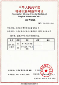 公司持有D1、D2級(jí)一、二類特種設(shè)備制造許可證,并通過了IS09001、14001國(guó)際體系認(rèn)證。目前公司共有各類安全、特種設(shè)備證書32人次,其中容器設(shè)計(jì)資質(zhì) 2人,壓力容器安全管理人員資質(zhì) 2人,壓力容器焊接操作資質(zhì) 9人,特種設(shè)備檢測(cè)資質(zhì) 1人。